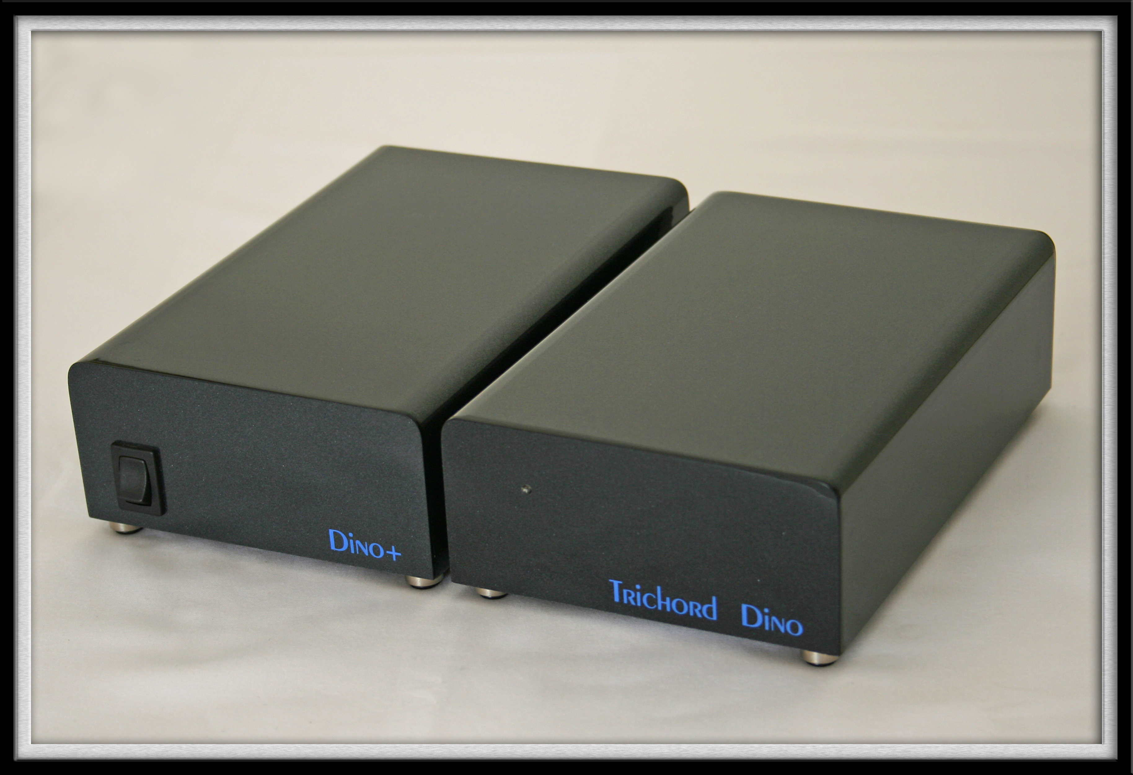 The Dino is user adjustable with a set of four DIP switches on the underside of the unit for ease of access. These switches allow for adjustment of cartridge loading and gain setting.The circuitry is signal non-inverting and constructed using high performance, audio grade bipolar and JFET operational amplifiers, metal oxide resistors and ultra low impedance capacitors throughout for lowest possible noise.The RIAA equalisation network is fully passive and located between two active gain stages. The capacitors and resistors used in this stage are very close tolerance audiophile types.Two state of the art ultra low impedance, low noise wide-band voltage regulators are employed to power both channels and are largely responsible for the high sonic performance of the Dino.